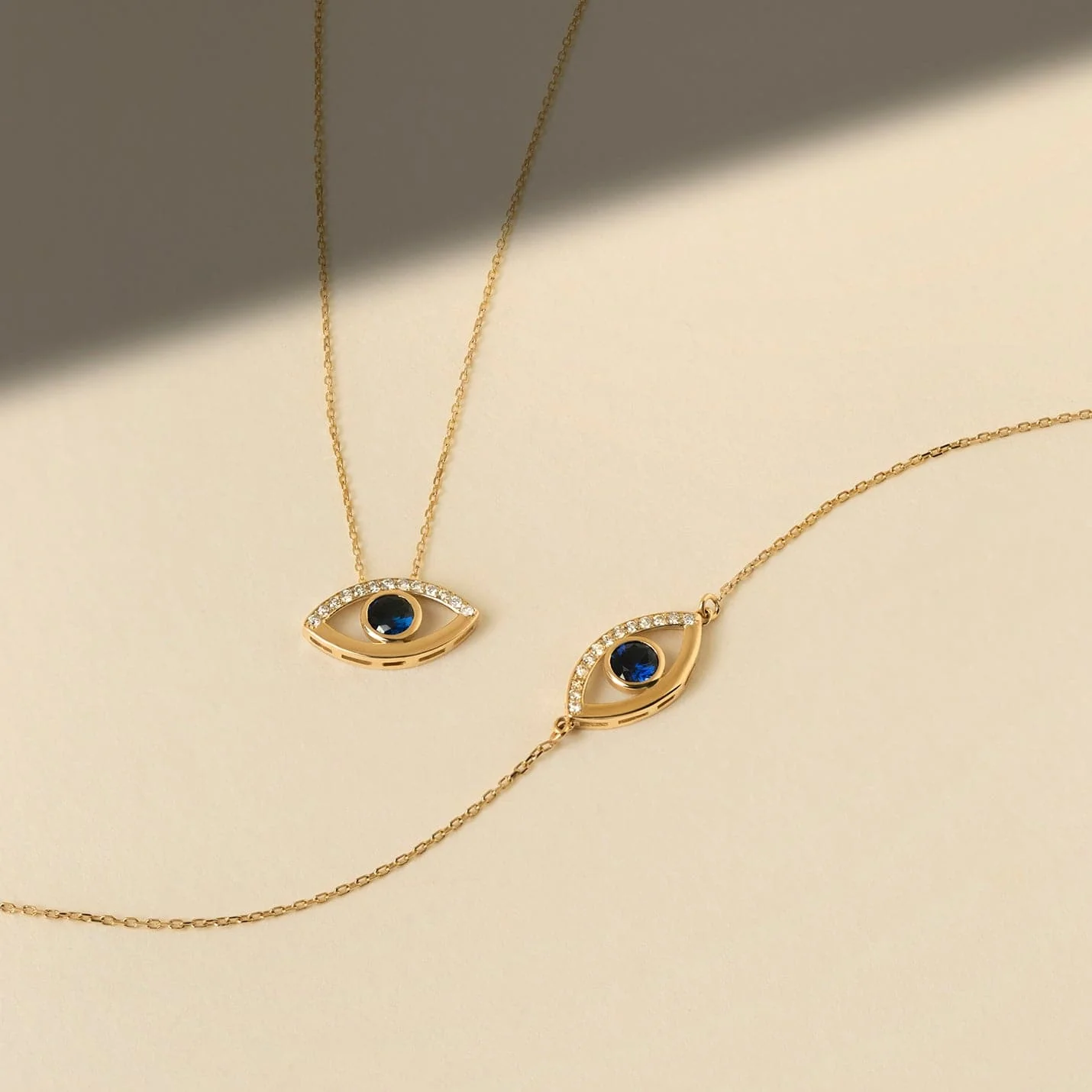-70%Diamond & Sapphire Open Evil Eye Pendant Necklace—